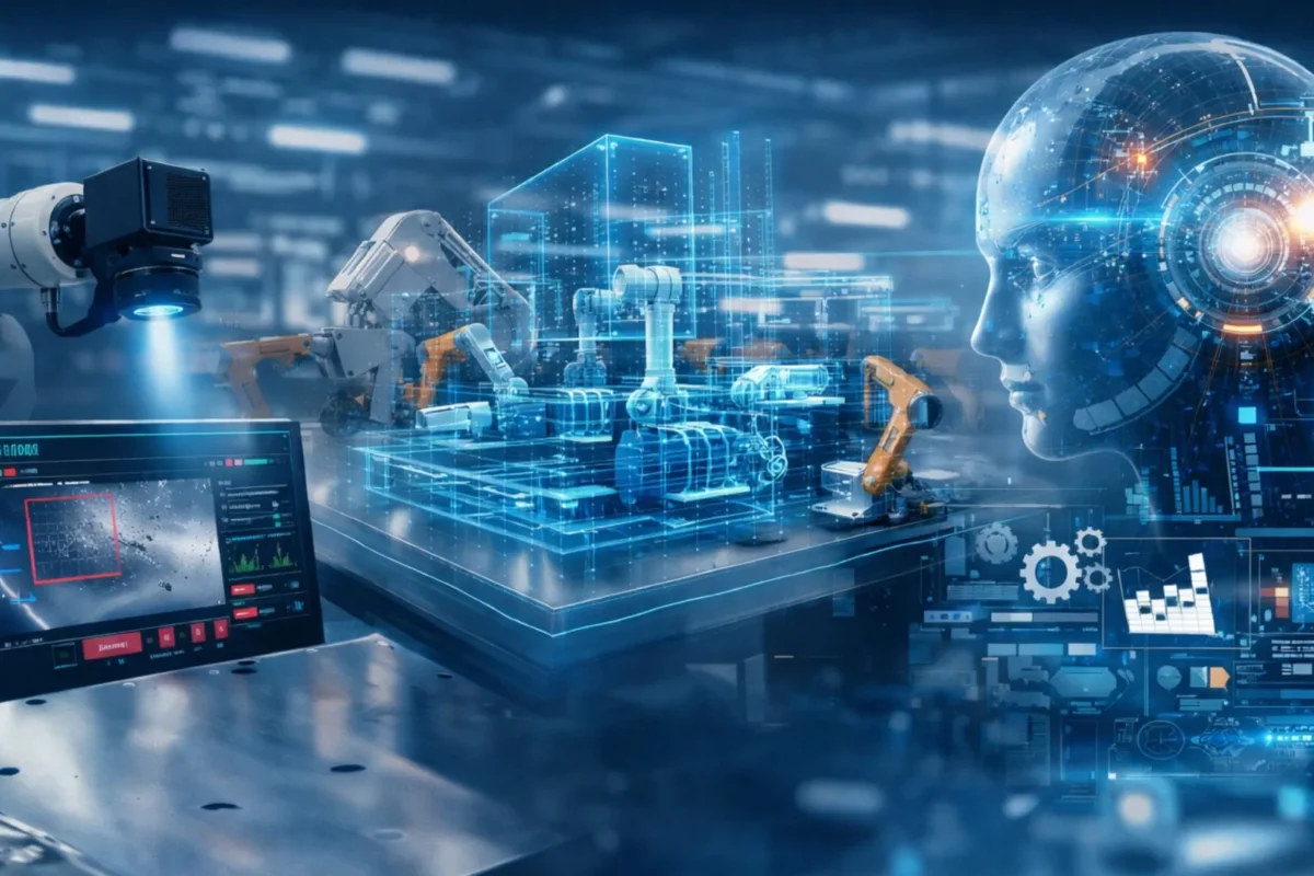 Gemelo digital del sistema de inspección para detección temprana y clasificación de defectos en chapa metálica, con IA avanzada y despliegue en Edge.